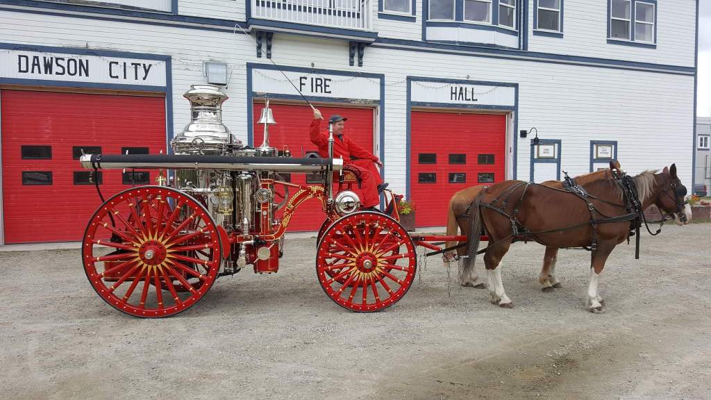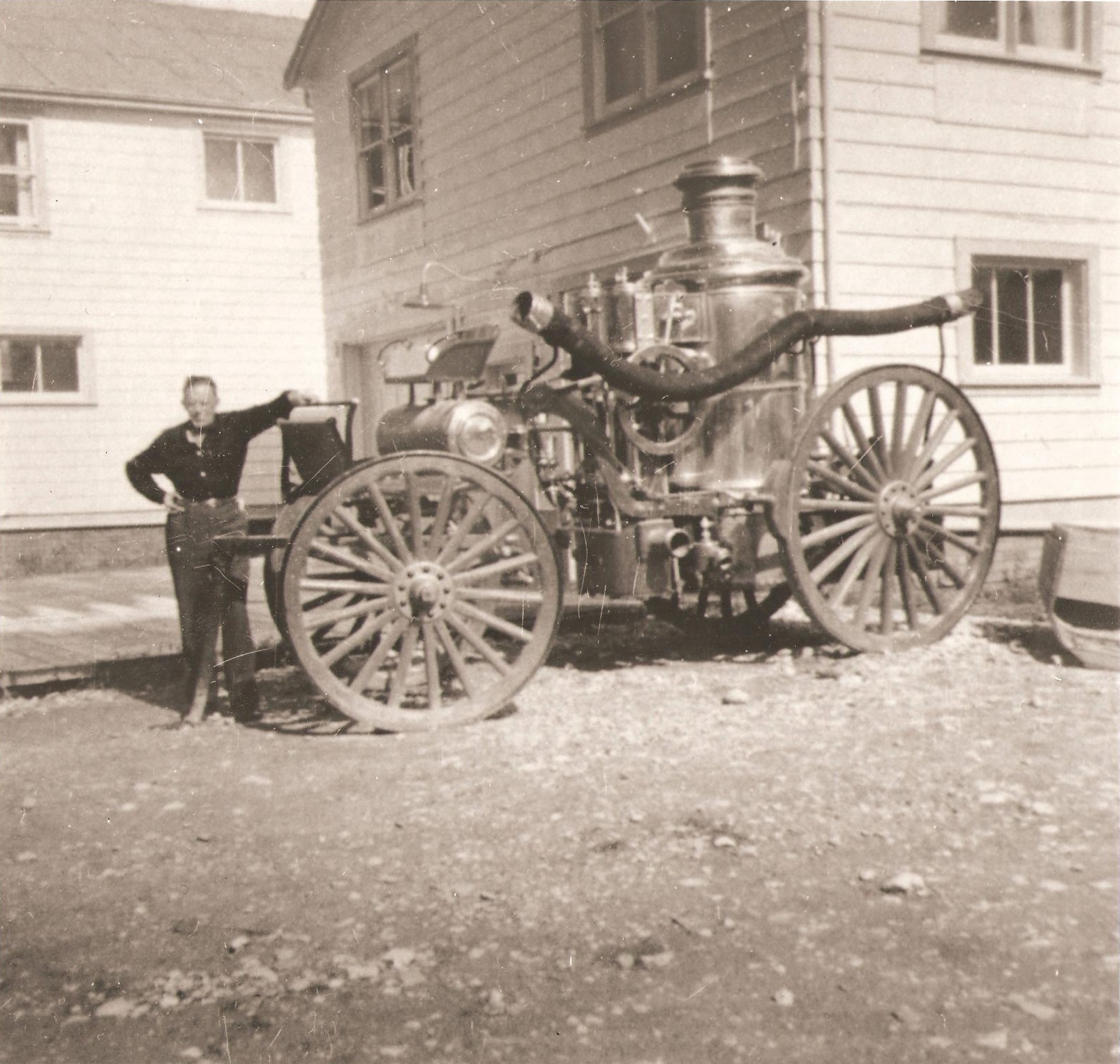 Put into service with the Dawson Fire Department in 1900, this was the second engine to be purchased by the city. Capable of pumping 500 gallons a minute, the double engine meant that one pump was always running, thus resulting in a near constant stream of water. The steamer had two suction and discharge openings, allowing either side to be connected for use. The frame of the steamer rests on springs, which would have helped it to run smoothly on the rough roads of early Dawson.